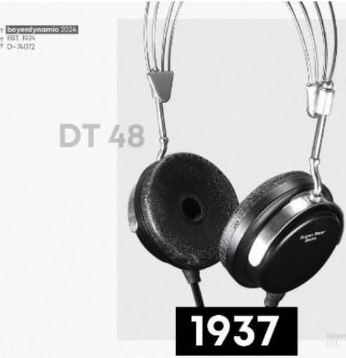 Debido o estos desorrollos, lo empreso pronto se expondió más allá de los altavoces: Los primeros auriculares beyerdynamic, el DT 48, se lanzaron en 1937. Como el primer conjunto de auriculares dinámicos ("DT" en el nombre significa "Teléfono Dinámico"), fueron utilizados por generaciones de ingenieros de sonido y reporteros. El DT 48 formó parte de nuestro portafolio de productos hasta finales de 2012.